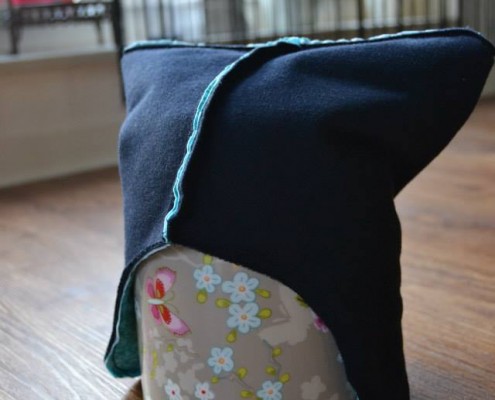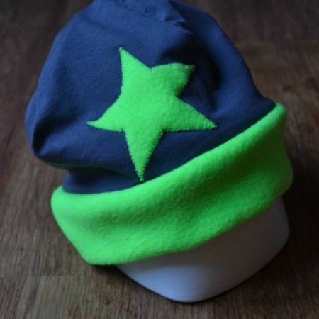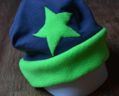 Die Wendemütze kann von beiden Seiten getragen und individuell angefertigt werden.