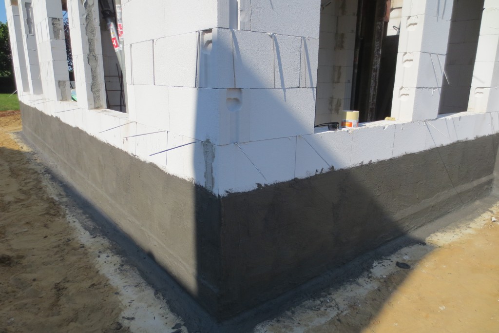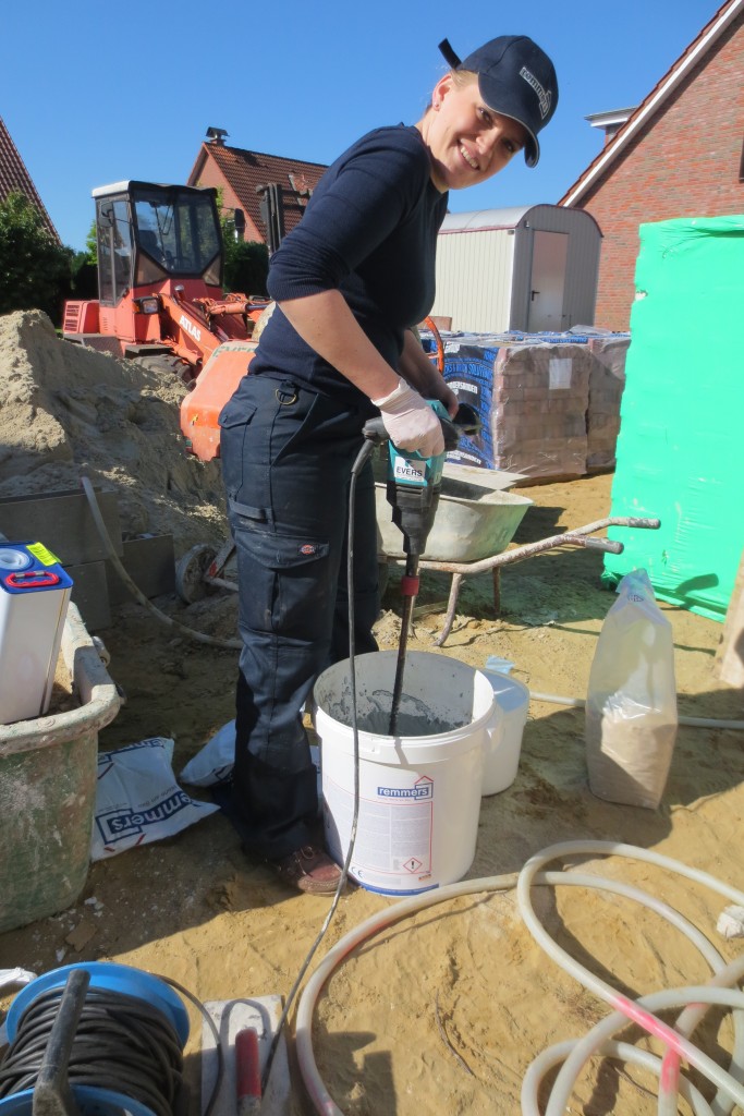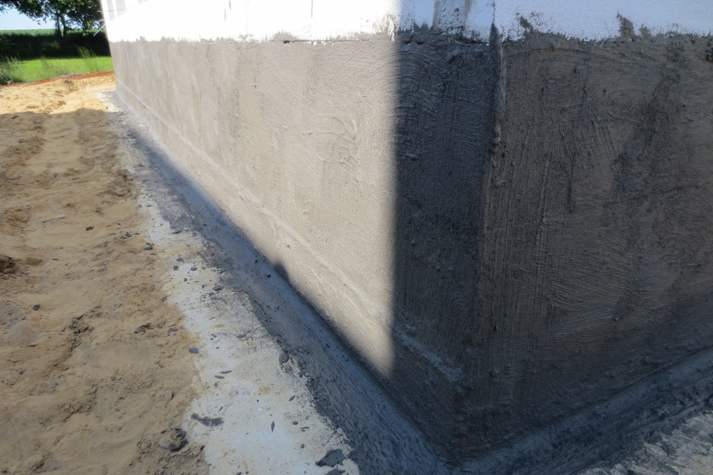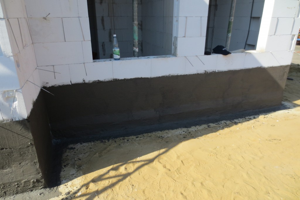 Respekt an alle die das täglich machen müssen. Mir tat danach alles weh. Aber das Ergebnis kann sich sehen lassen. Dank der tollen Vorarbeit von Heinz beim Spachteln der Unebenheiten und Kanten, könnten wir das sauber auftragen. Und bei der Dicke hält das sogar gegen drückendes Wasser, nicht nur gegen Regen. Aber man baut ja nur einmal und für die Ewigkeit 🙂