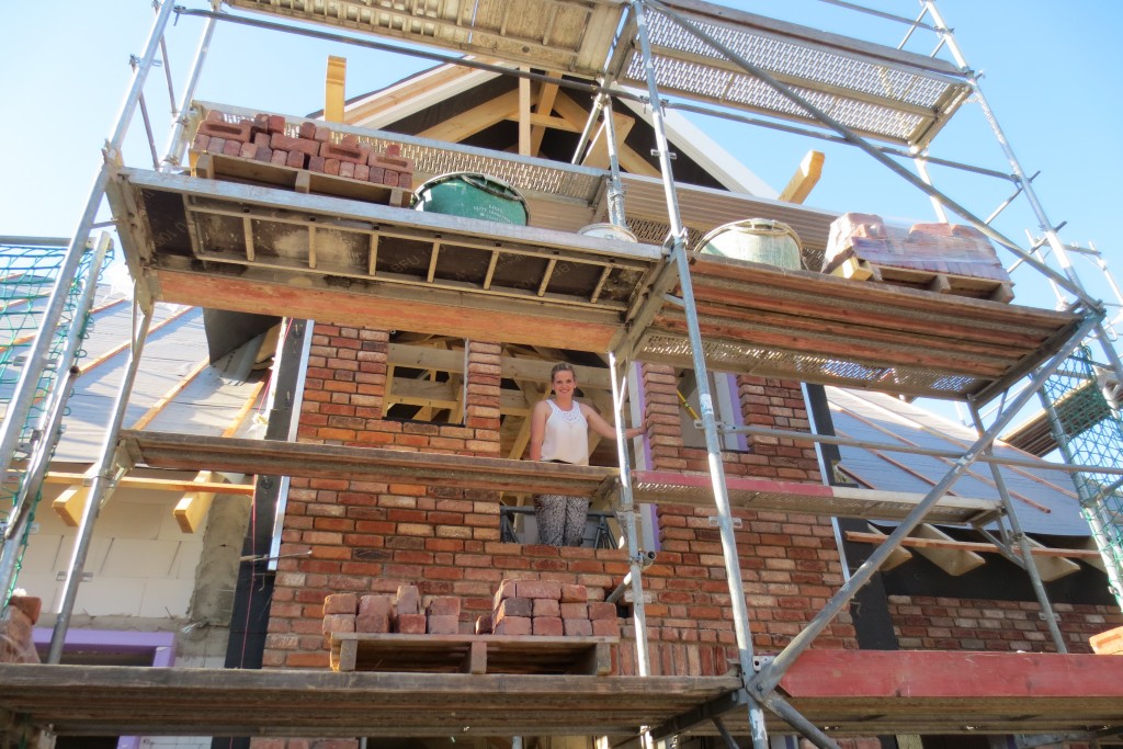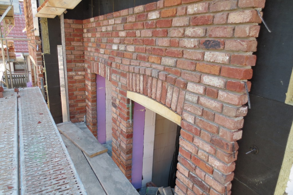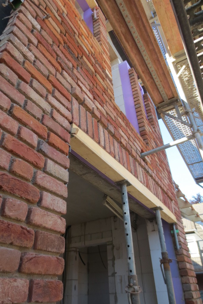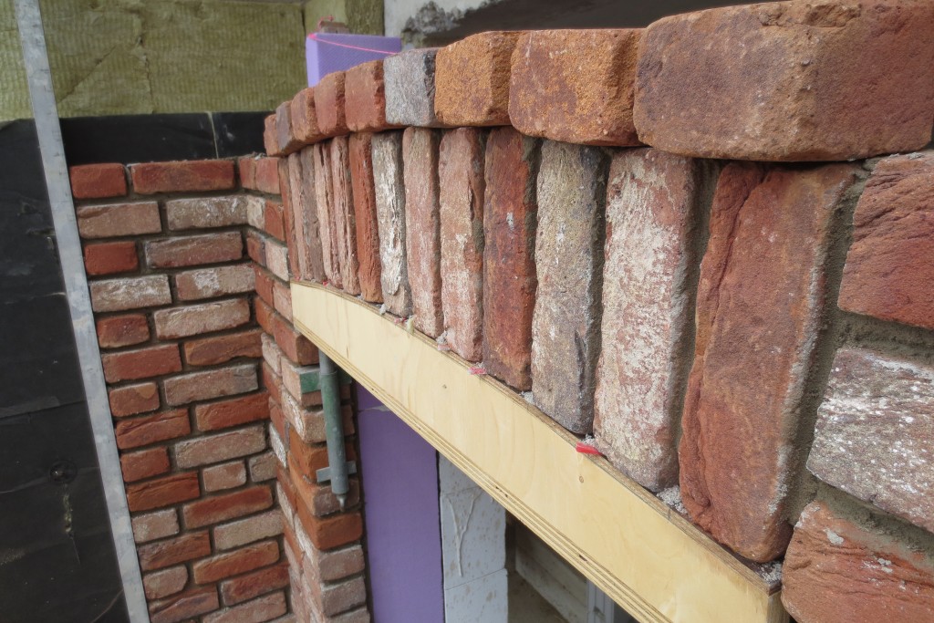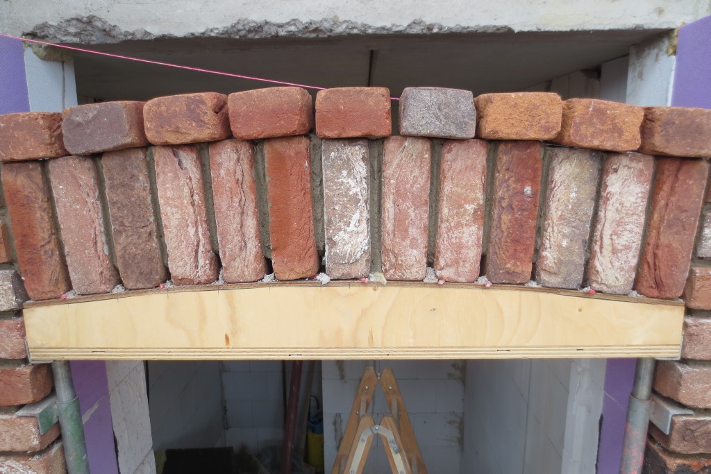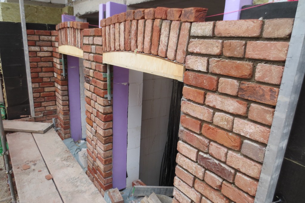 Fast schon zu heiß zum Mauern – aber besser als Regen. In den letzten Tagen wurden die Stichbögen über den Fenstern und der Tür gemauert. Carola und ich haben verschiedene Varianten ausprobiert: Kopfschicht rein- oder rausstehend, nur jeder zweite oder alle, 9 oder 10 Steine? Was gewonnen hat seht ihr in den Bildern. Was meint ihr – richtige Entscheidung?