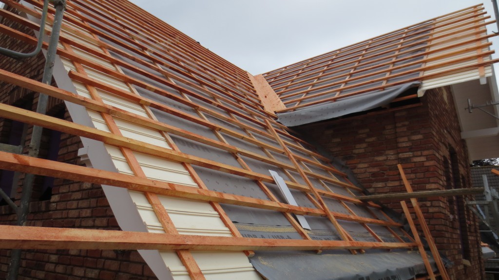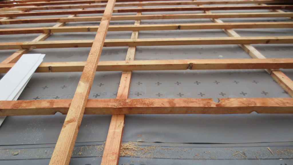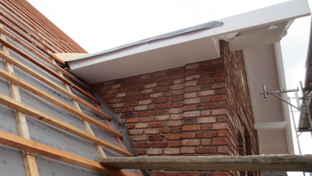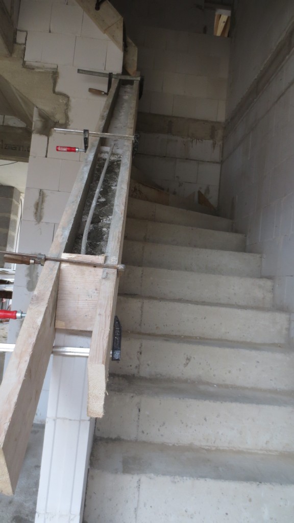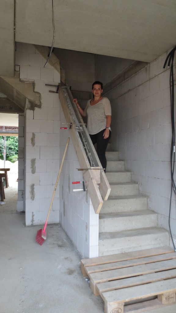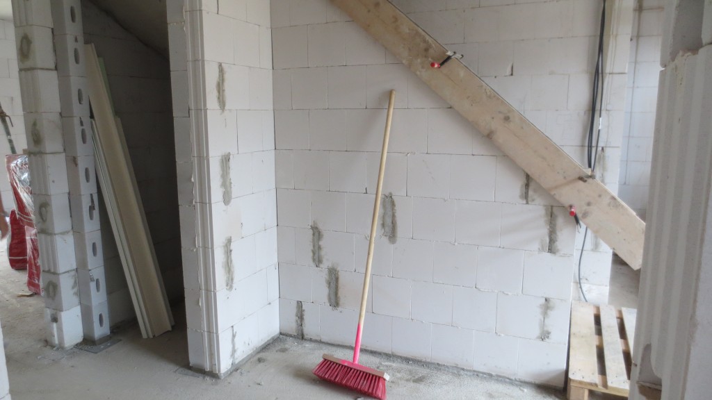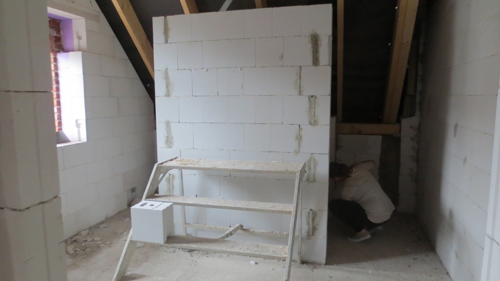 Es geht voran mit dem Dach. Die Lattung ist fertig und auch das Gesimse ist umzu. Montag kommen die Pfannen. Sind so gespannt. Vermutlich am Dienstag können wir die ersten Teile schon eingedeckt sehen. Und auch die letzten Innenwände sind inzwischen hochgezogen – Badezimmer, Abstellraum unter der Treppen, usw.