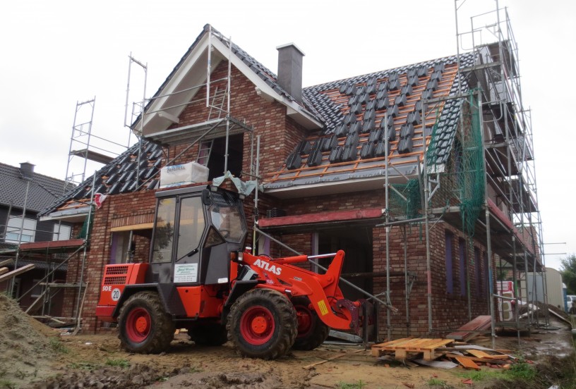 Die Pfannen sind inzwischen auf dem Dach verteilt. Letze Kleinigkeiten im Außenbereich noch, dann sind wir mit den Arbeiten unter dem Himmel fertig. Das Material für den Innenausbau ist aber auch bereits eingetroffen. In schweißtreibenden Stunden haben wir die 75 Latten, 39 Filzrollen, 33 OSB-, 44 Gipskarton- und 8 Feuchtraumplatten in den ersten Stock befördert. Danke an die fleißigen Helfer. Ab nächster Woche haben wir beide Urlaub und wollen diesen richtig nutzen – natürlich auf dem Bau 🙂