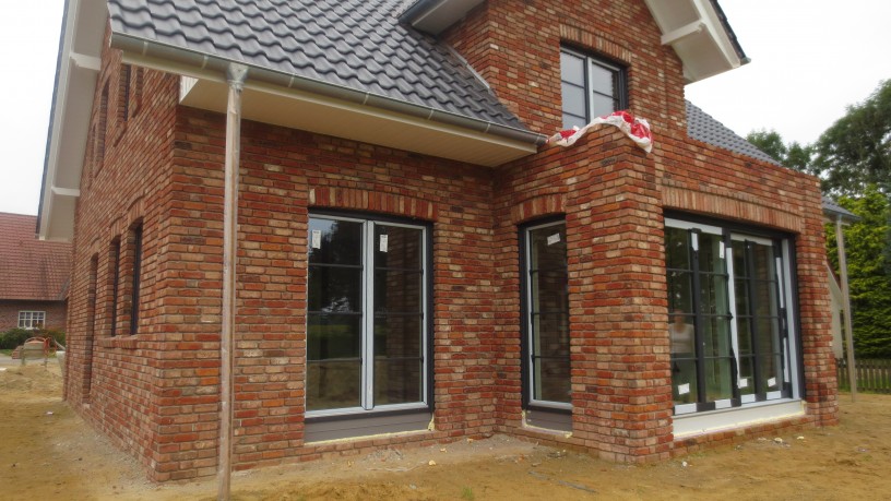 Haben uns gefreut wie die Schneekönige, als das erste Fenster eingebaut war. Fühlt sich direkt ganz anders an im Haus – kein Wind mehr, keine Geräusche von draußen und noch mehr Wohnlichkeit. Beim Abladen des Elements für die Schiebetür im Esszimmer mussten wir mit anpacken – das war auch mit 5 Mann und 1er Frau noch ziemlich schwer. Haustür wartet noch, damit die Handwerker weiterhin ein- und ausgehen können. Aber sonst sind alle Fenster drin. Morgen dann die Rolladenkästen und anschließend die Fensterbänke. Apropos Fensterbänke – die waren innen auf einmal doch zu hoch, da mussten wir nochmal schnell die elektrische Säge auspacken und 8cm abnehmen. Auch die übrigen Abmauerungen sind bis auf letzte Kleinigkeiten durch. Ende dieser Woche kann also der Putz drauf – bis dahin schrauben wir noch die Deckenplatten an und legen die restlichen Leitungen. Vorher aber nochmal Bilder machen, wo genau jede Leitung lang läuft 😉