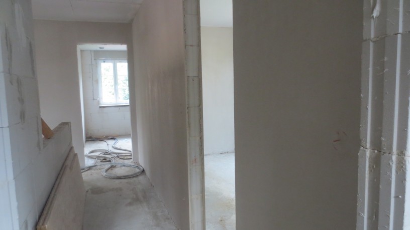 Der Putzer ist mit den Arbeiten durch – unsere Wände sind jetzt schön glatt. Und auch der Balkon ist mit Tobis Unterstützung dicht und vor Regen geschützt. Den ganzen Schutt und sonstige Reste haben wir nach draußen bzw. zum Müll und das Haus wieder auf Vordermann gebracht. Dieses Wochenende können wir uns daher kurz zurücklehnen. Ab Montag geht es weiter mit den Sanitär-Rohrverlegungen und restlichem Stromkabel-Ziehen über den Boden. Anschließend dann die Fußbodenheizung – die wir wieder selbst verlegen. Dann kann der Estrich kommen.