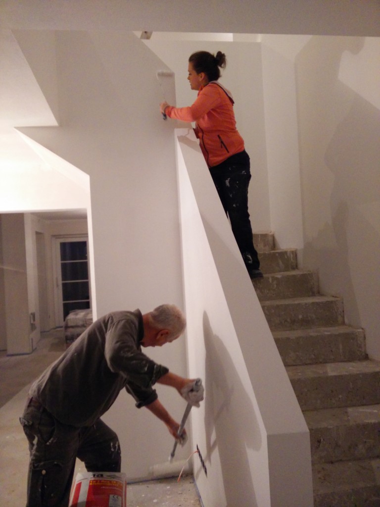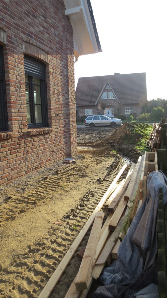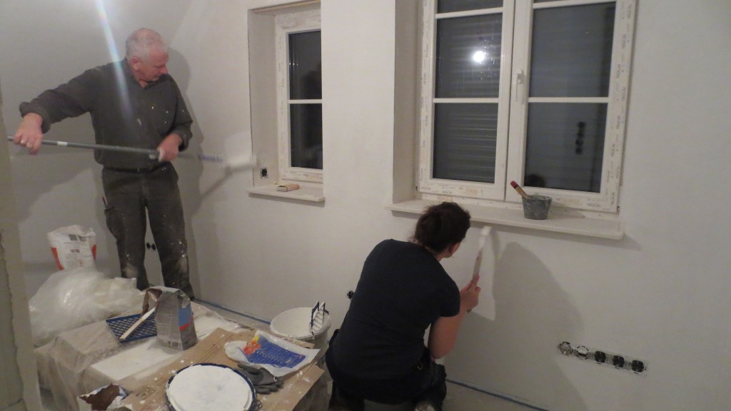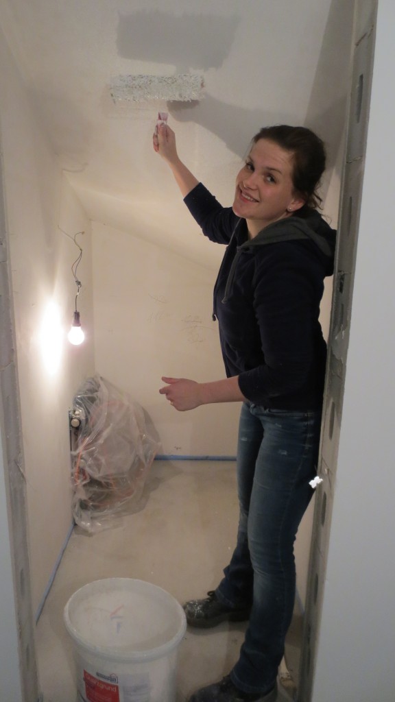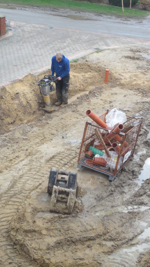 Wie geplant kommen wir zwischen den Jahren gut voran. Nachdem letzte Woche unsere Abflüsse an die Kanalisation angeschlossen wurden, hat es erst einmal ziemlich gemüffelt im Haus. Wir haben die undichte Stelle an einem der Abflussrohre aber schnell entdecken können. Nun fließt auch das Regenwasser nicht mehr am Haus in den Sand, sondern wird in die Ellenbäke geleitet. Für den Pflasterer im nächsten Jahr ist damit alles bereit. Aber auch innen kommen wir gut voran. Wände schleifen, Löcher spachteln, Abkleben und viel Streichen – mit Heinz Unterstützung und der weltbesten Farbe klappt das entsprechend zügig – wobei die Kleinigkeiten ganz schön aufhalten können. Oben sind wir aber bereits komplett weiß und bis die Fliesenleger nächste Woche wieder anrücken, sollten wir mit allem durch sein. Die Tage bis zum Einzug sind also gezählt. Wir freuen uns riesig auf das nächste Jahr und wünschen allen einen guten Rutsch in 2016.