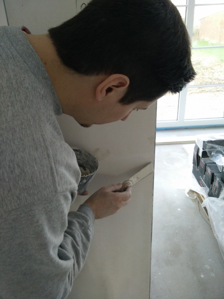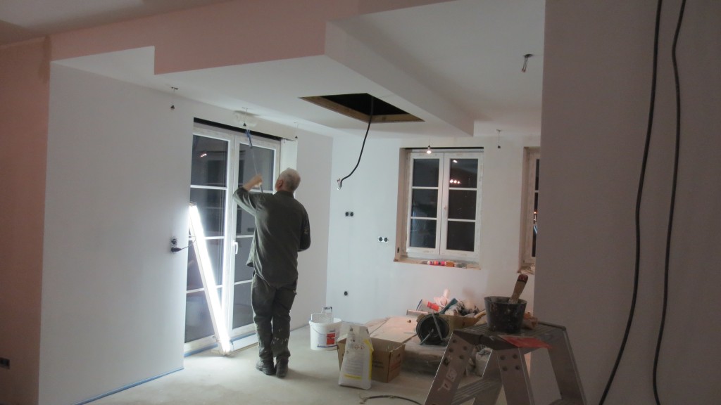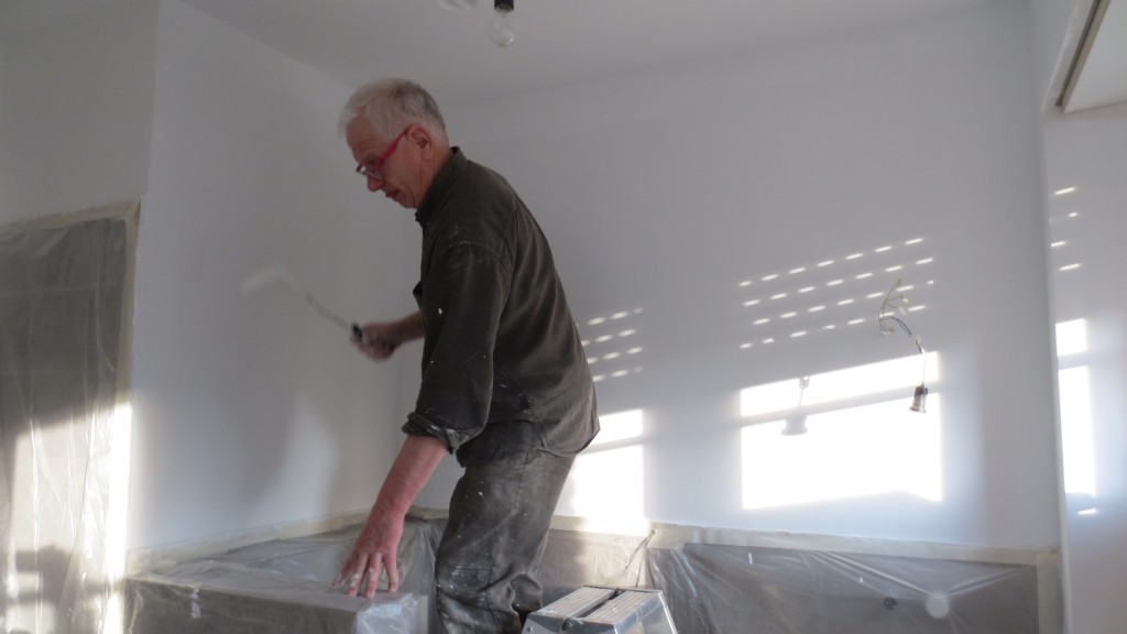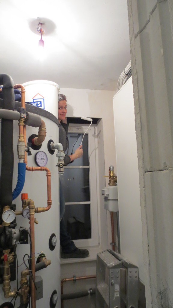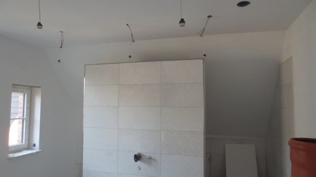 Wie geplant kommen wir zwischen den Jahren gut voran. Nachdem letzte Woche unsere Abflüsse an die Kanalisation angeschlossen wurden, hat es erst einmal ziemlich gemüffelt im Haus. Wir haben die undichte Stelle an einem der Abflussrohre aber schnell entdecken können. Nun fließt auch das Regenwasser nicht mehr am Haus in den Sand, sondern wird in die Ellenbäke geleitet. Für den Pflasterer im nächsten Jahr ist damit alles bereit. Aber auch innen kommen wir gut voran. Wände schleifen, Löcher spachteln, Abkleben und viel Streichen – mit Heinz Unterstützung und der weltbesten Farbe klappt das entsprechend zügig – wobei die Kleinigkeiten ganz schön aufhalten können. Oben sind wir aber bereits komplett weiß und bis die Fliesenleger nächste Woche wieder anrücken, sollten wir mit allem durch sein. Die Tage bis zum Einzug sind also gezählt. Wir freuen uns riesig auf das nächste Jahr und wünschen allen einen guten Rutsch in 2016.