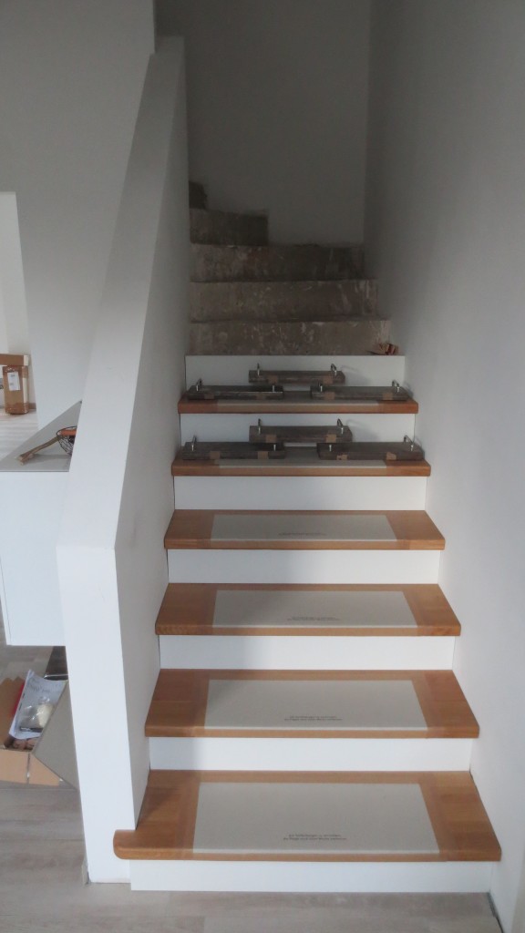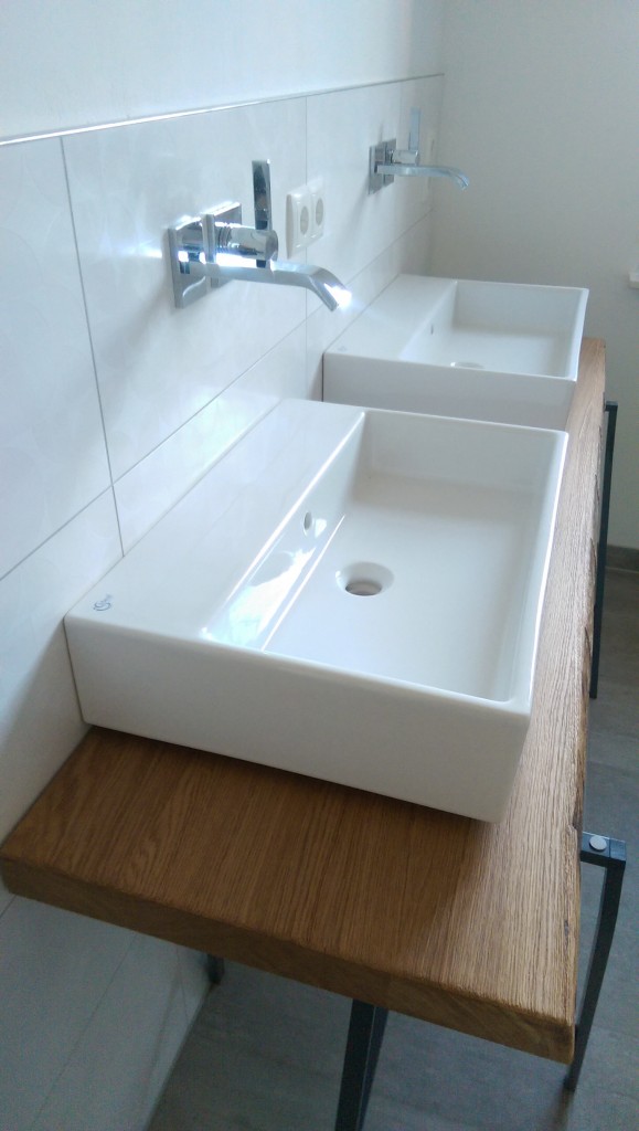Endlich sind sie eingebaut. Sowohl unsere Treppe, wie auch Spüle und Herd in der Küche sind an ihrem Platz. Noch ein paar letzte Anschlüsse, Anpassungen an der Sockelleiste und Anfliesen an die letzte Stufe im OG, dann können wir auch diese Baustellen schließen. Und auch die Waschbecken im Badezimmer sowie unser Waschtisch sind endlich da, so dass wir ausmessen, aussägen und schon mal Probestellen konnten. Die passenden Konsolenträger in der gewüschten Größe zu finden gestaltet sich aber doch schwieriger als gedacht. Nun muss also doch Heinz das Schweißgerät auspacken. Unsere Badewanne haben wir inzwischen schon eingeweiht – freuen uns aber wenn auch der letzte Raum – das Badezimmer – bald komplett ist. Dann können wir uns passend zu den steigenden Temperaturen um alle Projekt im Außenbereich kümmern.