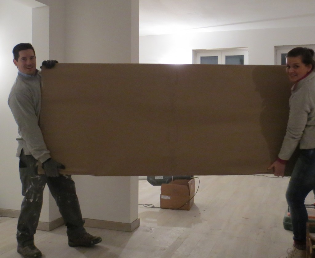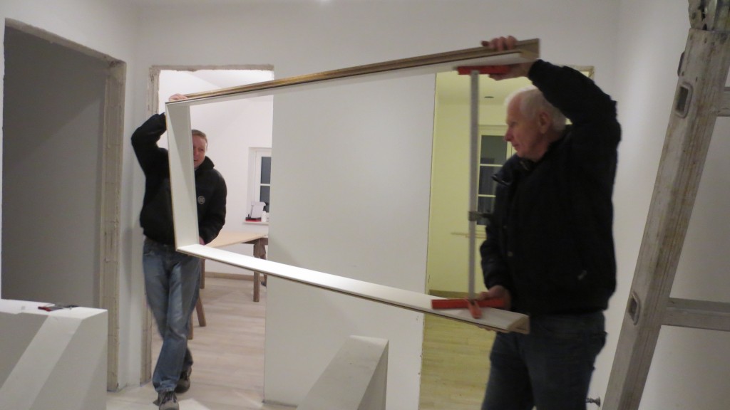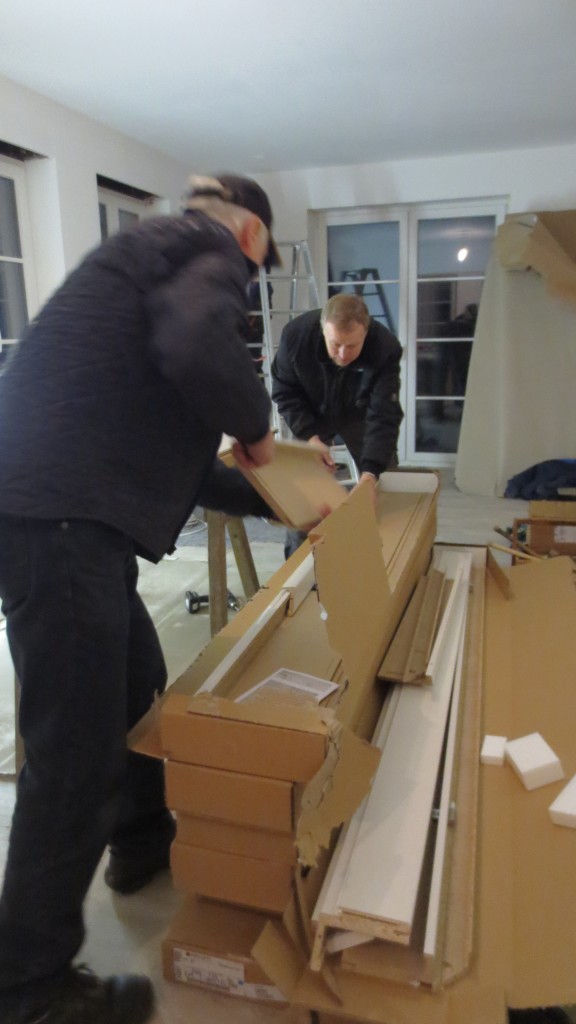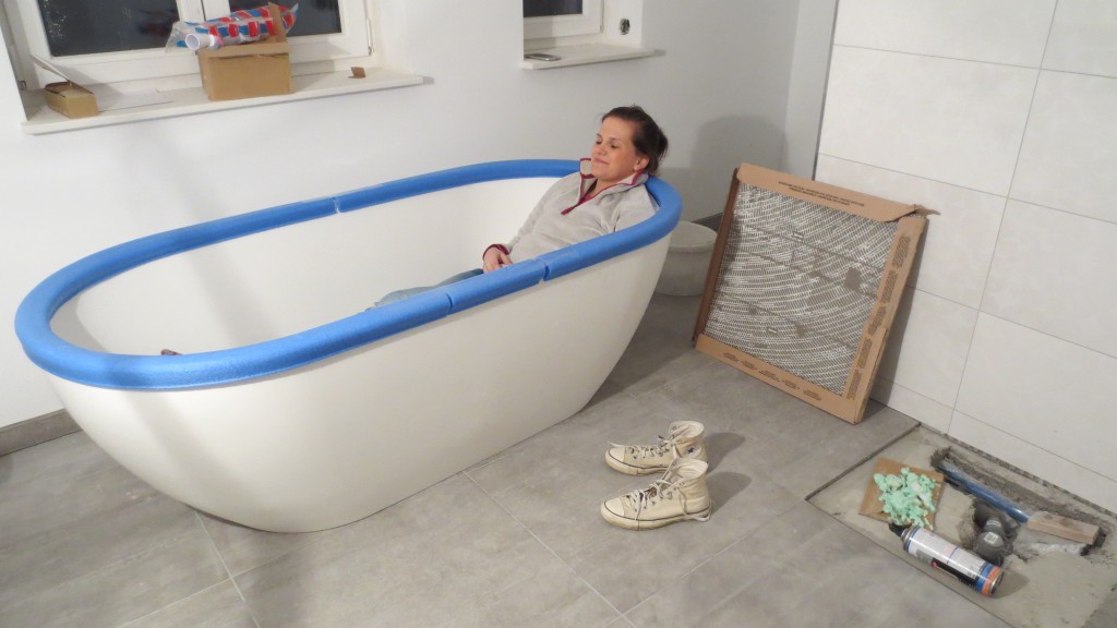 Nachdem unser Haus im neuen Jahr von den heiligen drei Königen noch gesegnet wurde, sind inzwischen beinahe alle Bodefliesen verlegt und die Sockelleisten angebracht. Und auch die Türen sind zum großen Teil eingebaut, was nochmal einen deutlichen Unterschied in der Wahrnehmung schafft. Steckdosen bauen wir nun gerade ein und sogar ein erstes Möbelstück – der Wäschewurf-Schrank wurde aufgebaut. Ein deutlich größerer Kraftakt war es aber, die Badewanne ins Bad im Obergeschoss zu wuchten. Mit fünf Mann ist uns das aber ohne Schäden gelungen und so konnte Carola gestern zum ersten Mal Probeliegen. In dieser Woche muss jedoch noch einiges passieren, damit für den Umzug alles vorbereitet ist: Die Küche wird Mitte der Woche aufgebaut, Sanitäranlagen eingebaut, Heizung angeschlossen, Bäder versiegelt… Endspurt also 🙂