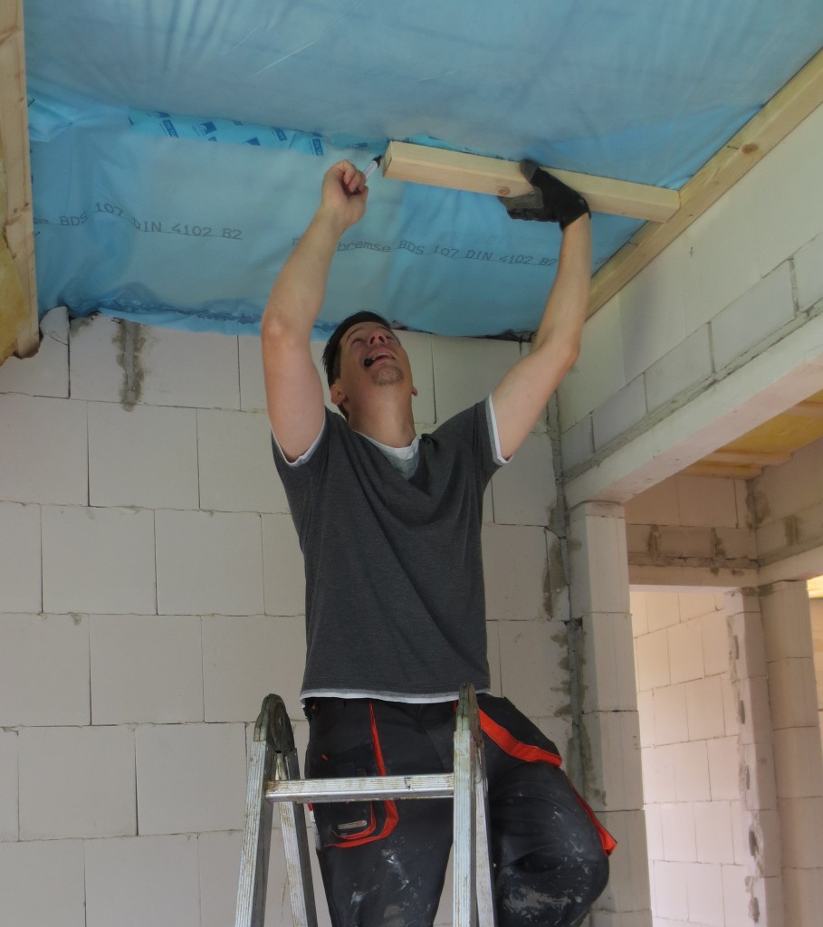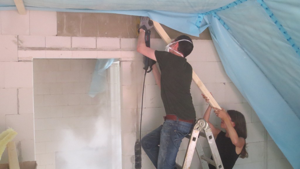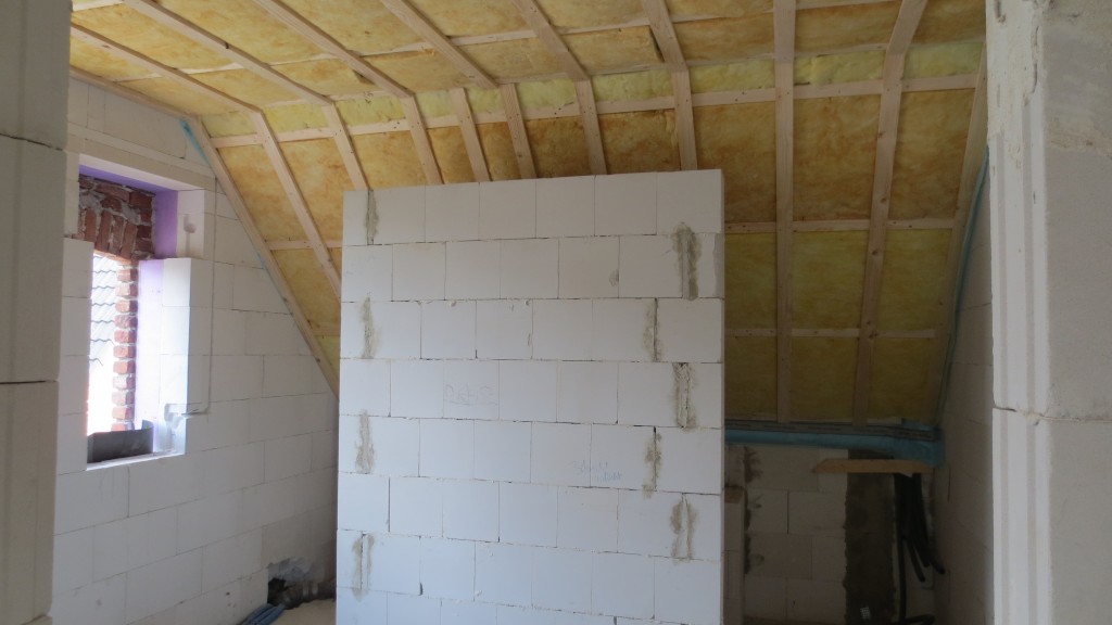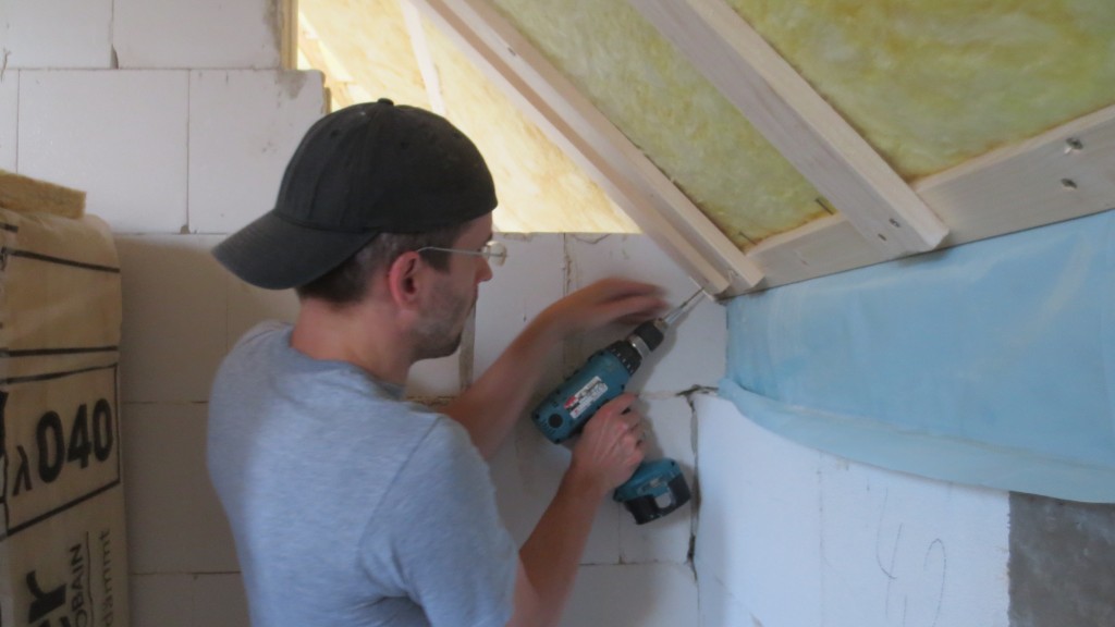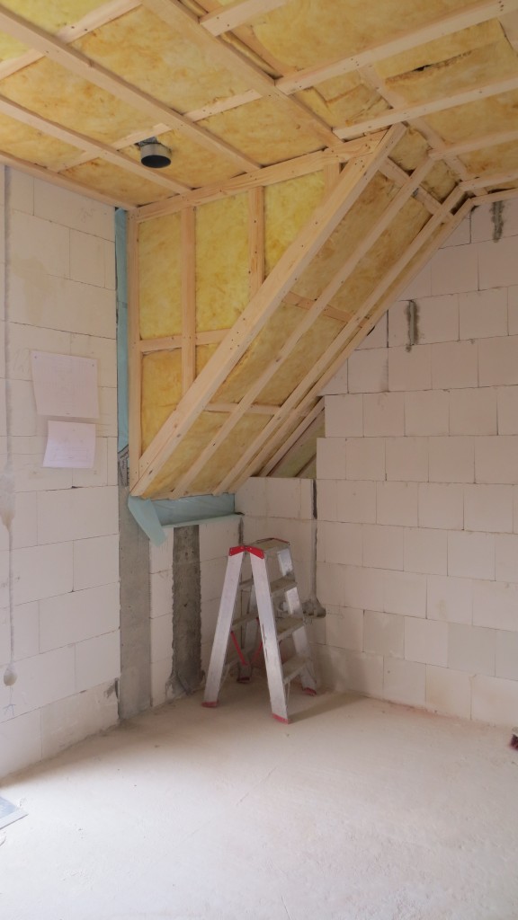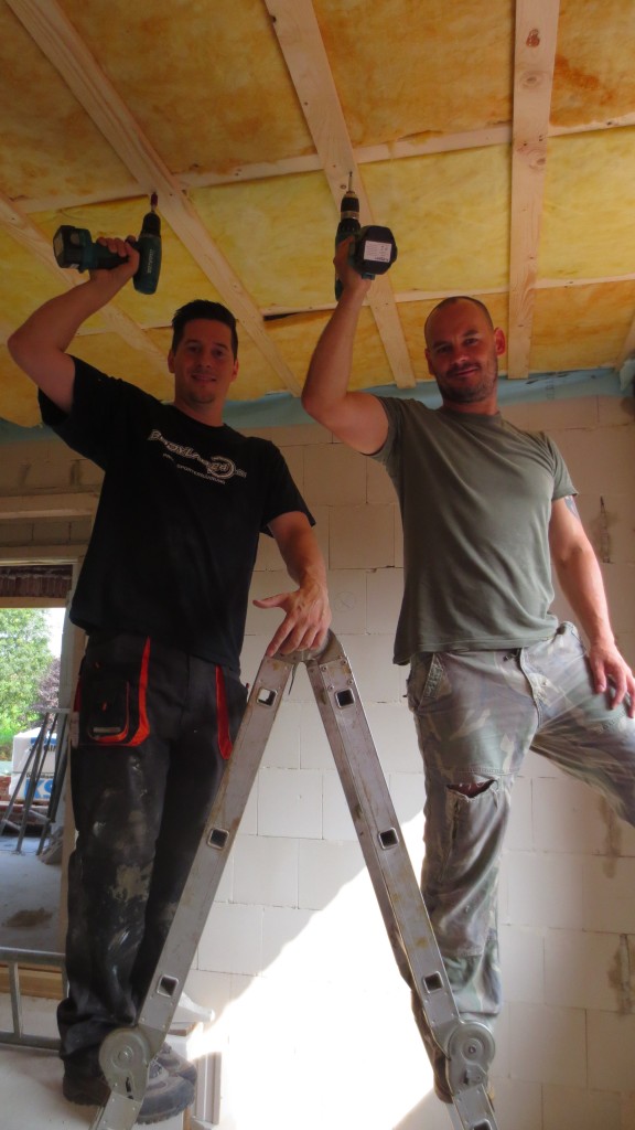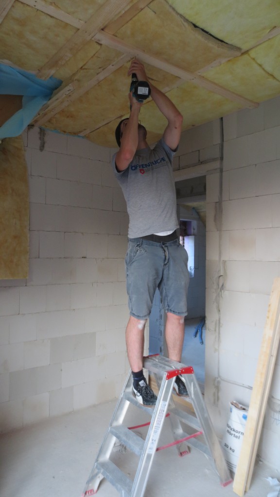 Naja fast haben wir den Innenausbau geschafft. Sind dem Abschluss auf jeden Fall sehr nah gekommen. Lüftung ist verlegt, Schlitze sind gestemmt, Dämmung ist komplett. Mit Hilfe von Marcy, Heiko und Sassi konnten wir heute die letzten Latten der Deckenkonstruktion anbringen. Jetzt nur noch Stromkabel ziehen und dann können die Deckenplatten dran. Sind in unserem Urlaub also wie geplant ein großes Stück weiter gekommen. Anbringen der Dachrinne und erste Sanitär-Arbeiten sind ebenfalls erfolgt. Und in zwei Wochen kommen schon die Fenster. Dann gehts mit dem Putz und dem Boden weiter.